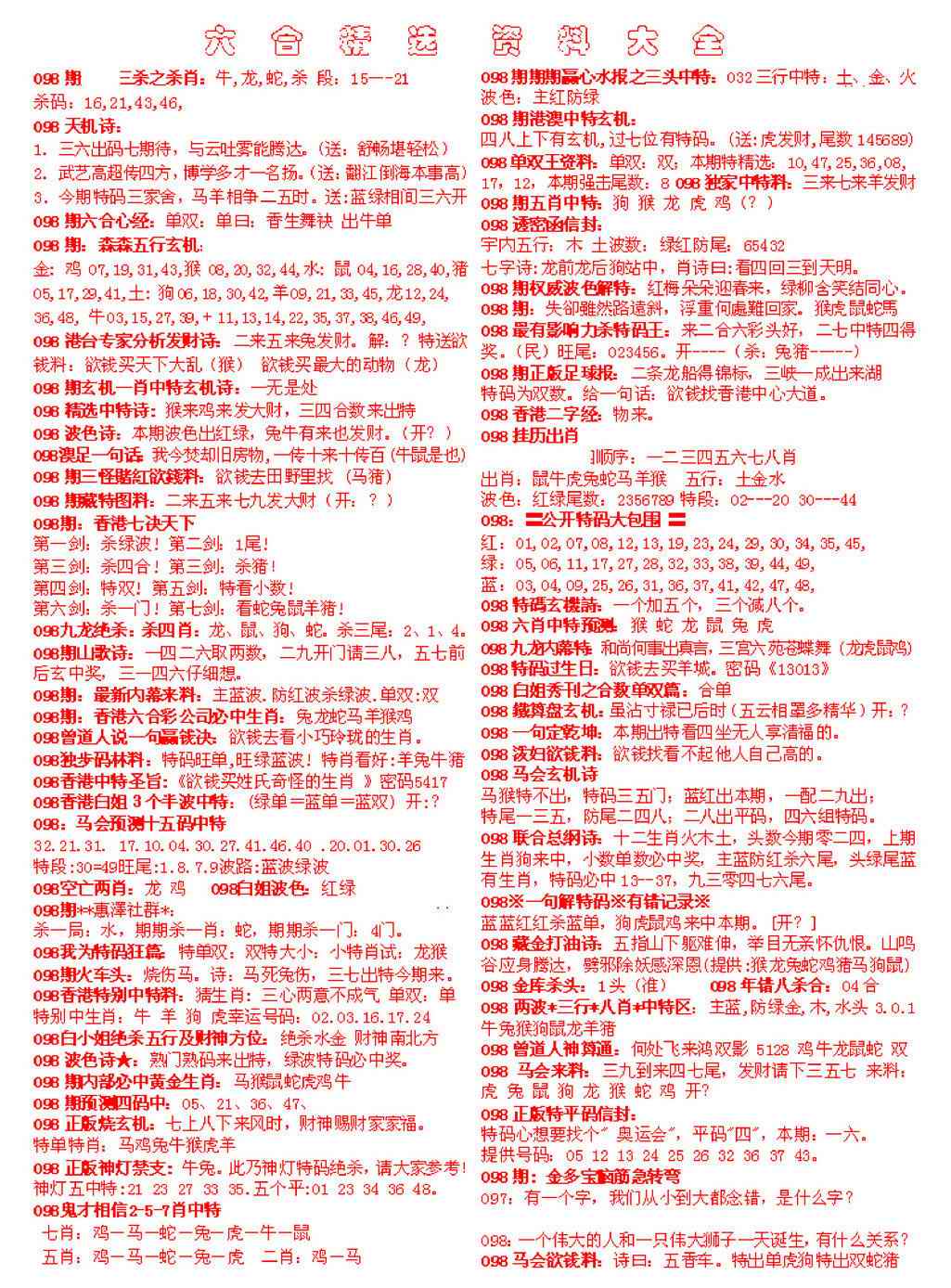 098期六合精选资料大全[图]