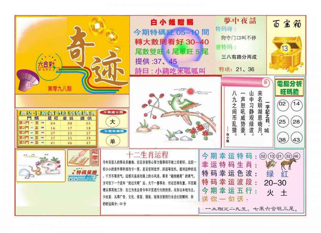 098期马经奇迹A(新图推荐)[图]