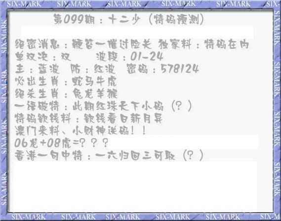 099期十二少(特码预测)[图]
