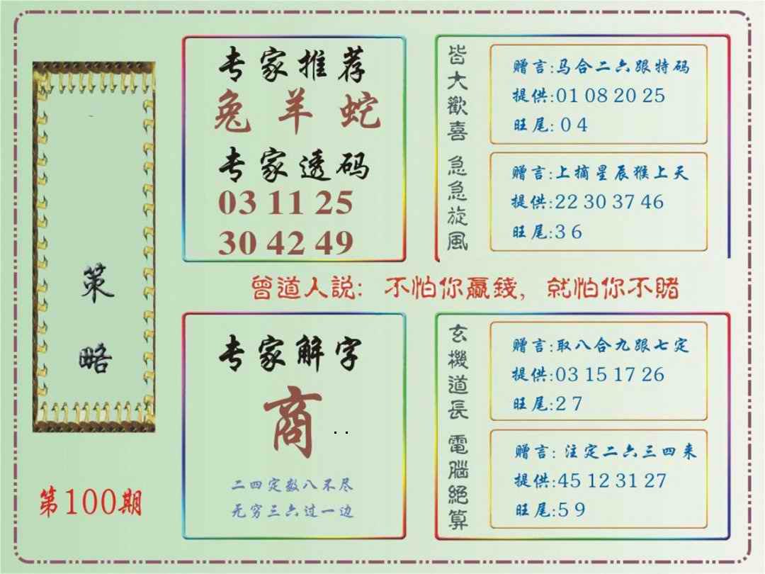 100期马经策略[图]