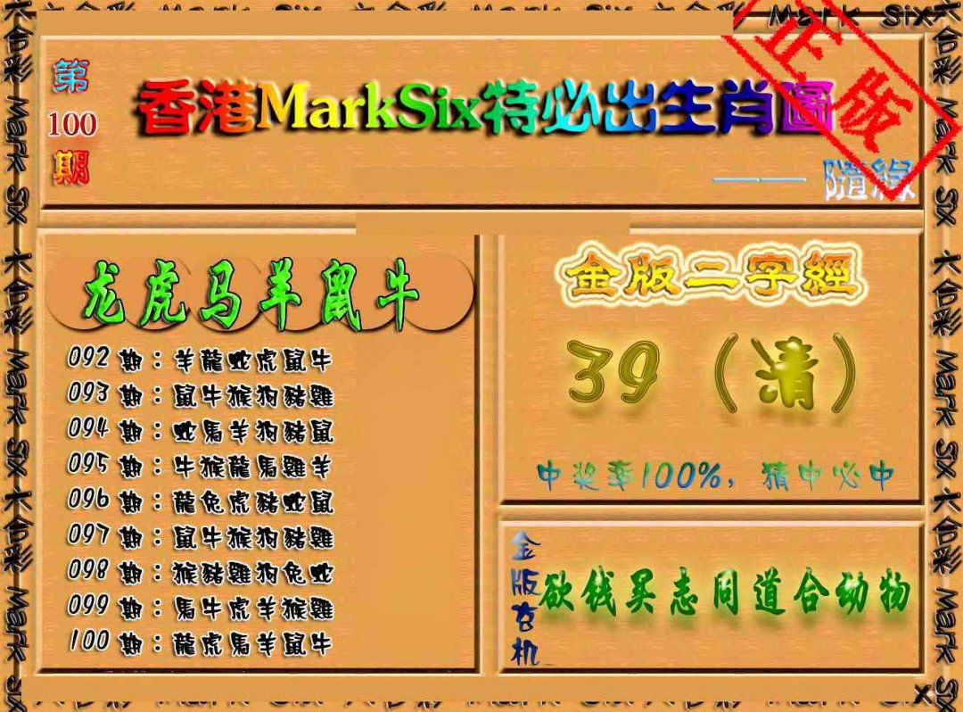 100期特必出生肖图(加大版)[图]