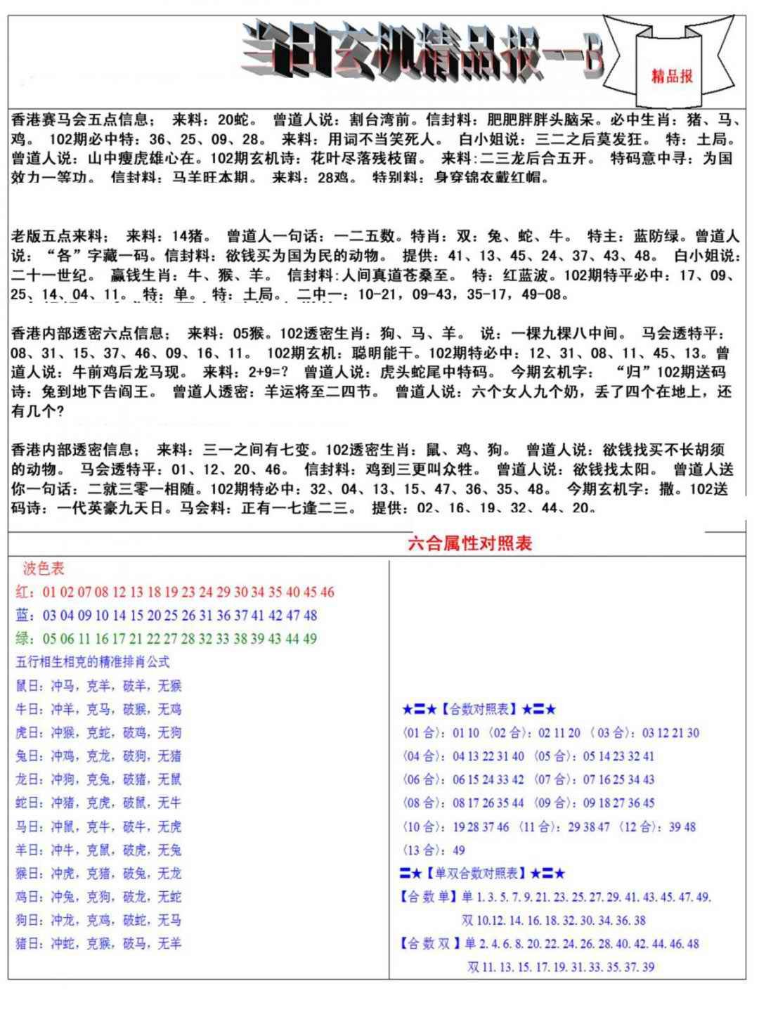 102期当日玄机精品报B[图]