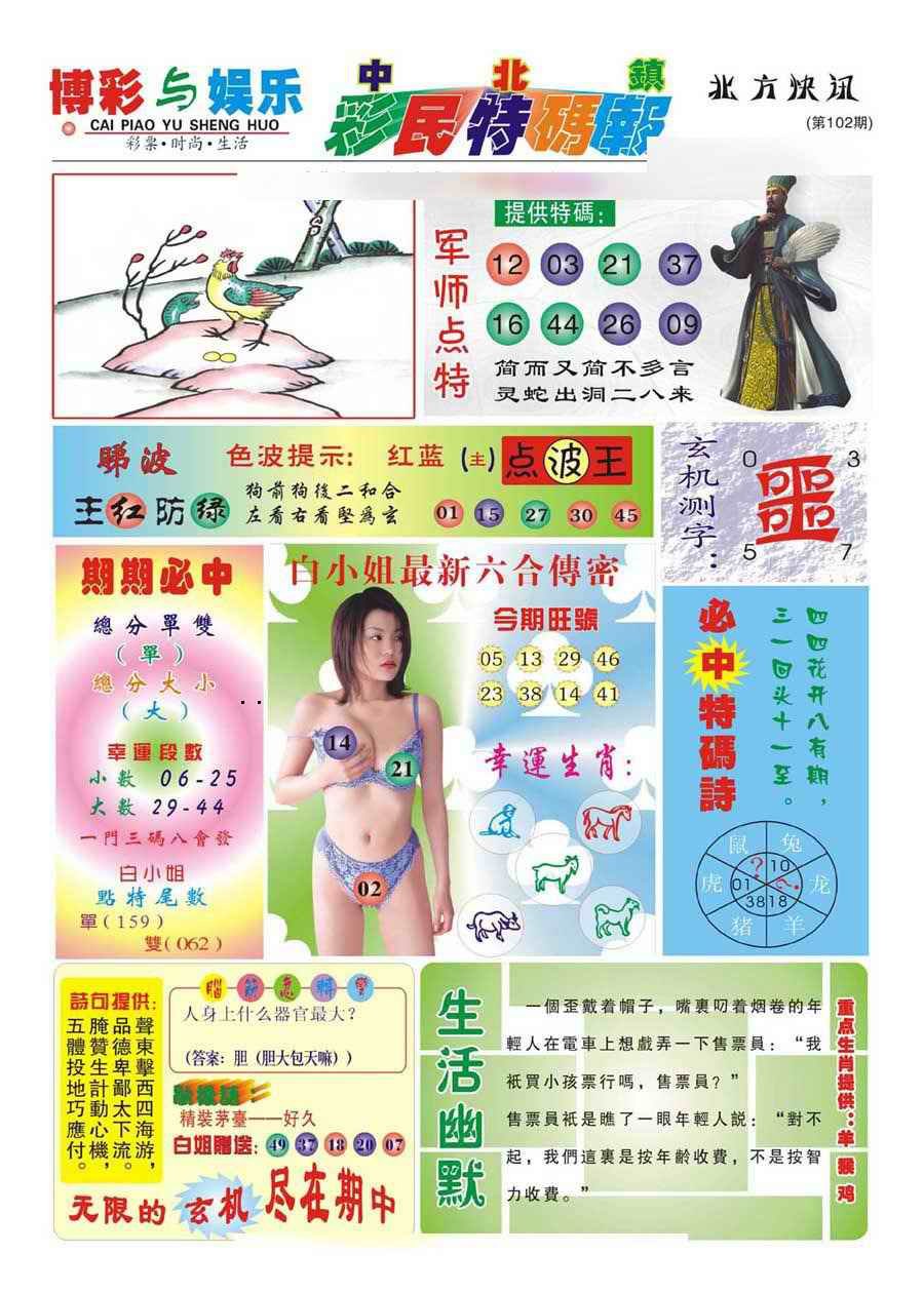 102期中北彩民特码报(新)[图]