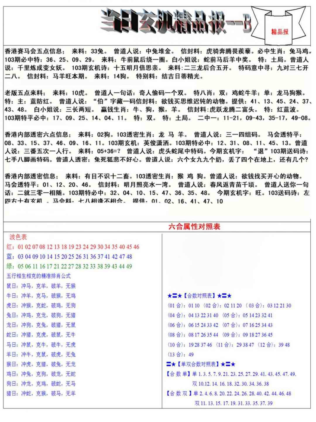 103期当日玄机精品报B[图]