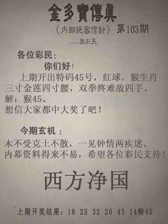 103期金多宝传真[图]