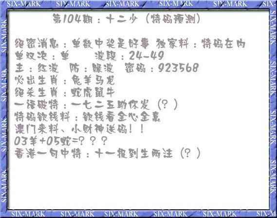 104期十二少(特码预测)[图]