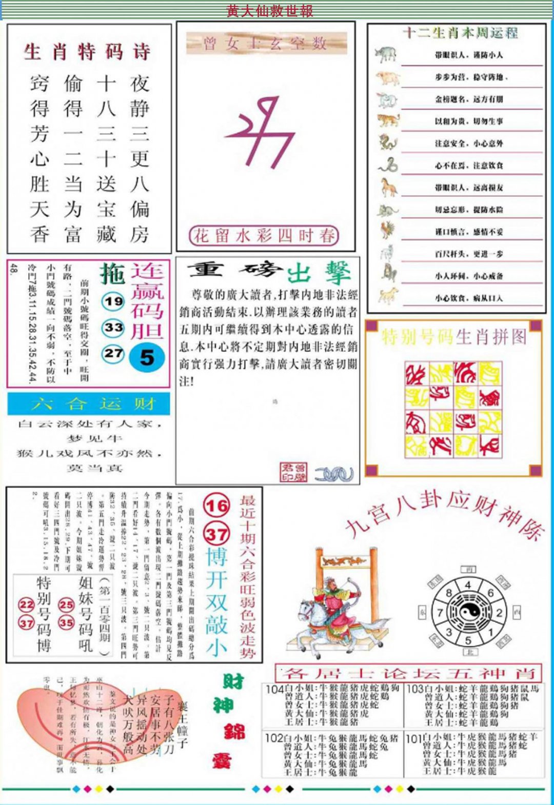104期黄大仙救世B加大版[图]