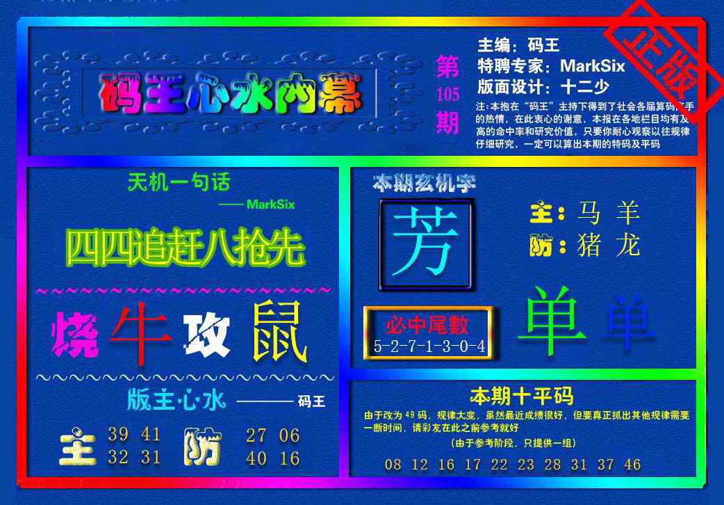 105期{码王雷锋}内幕报[图]