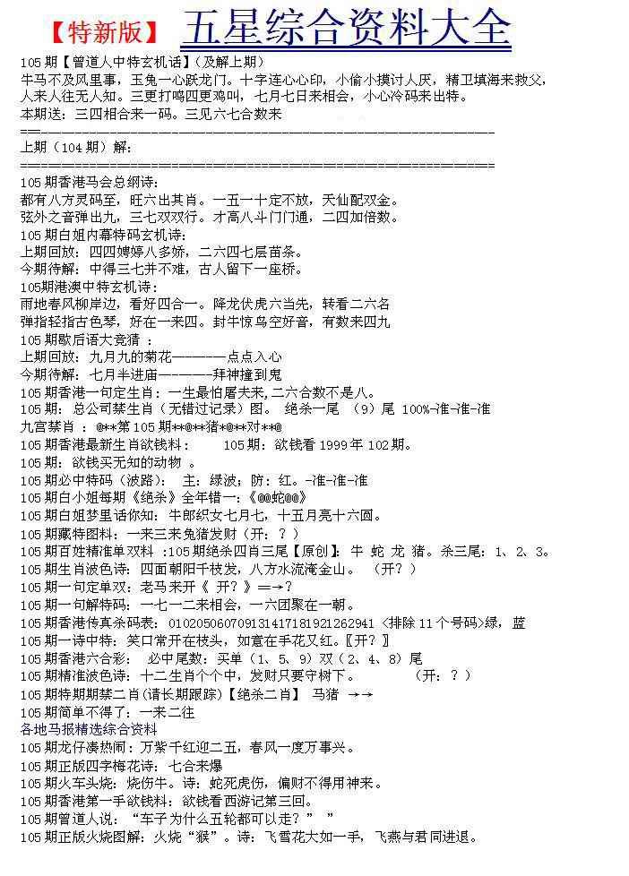 上一篇:105期五鬼正宗会员综合资料A[图]