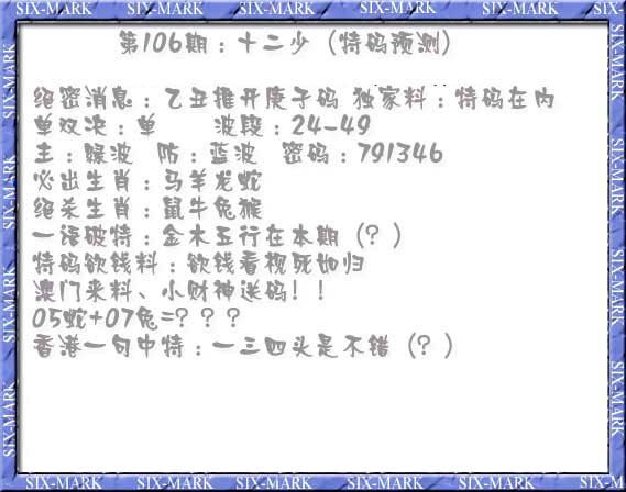 106期十二少(特码预测)[图]