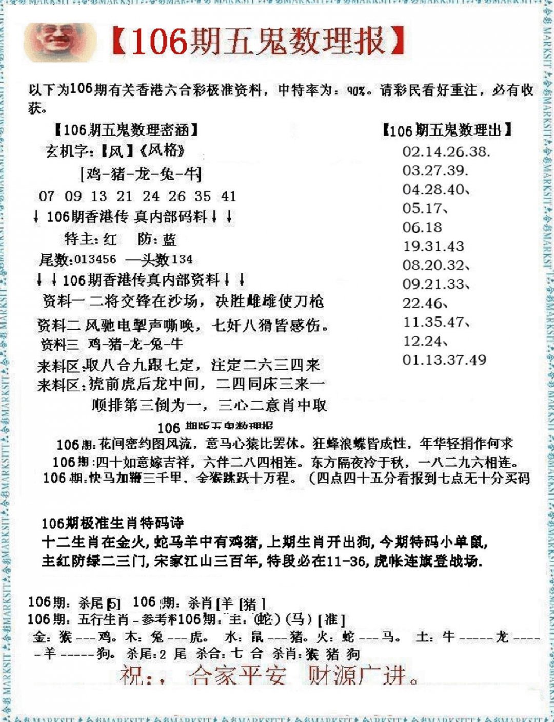 106期五鬼数理报[图]