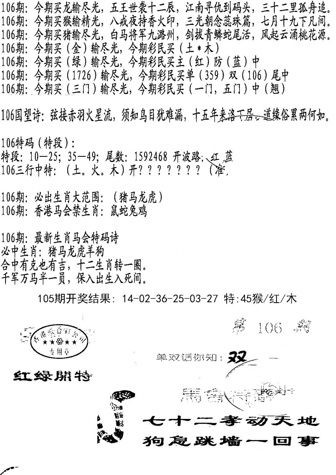 上一篇:106期香港马头报[图]