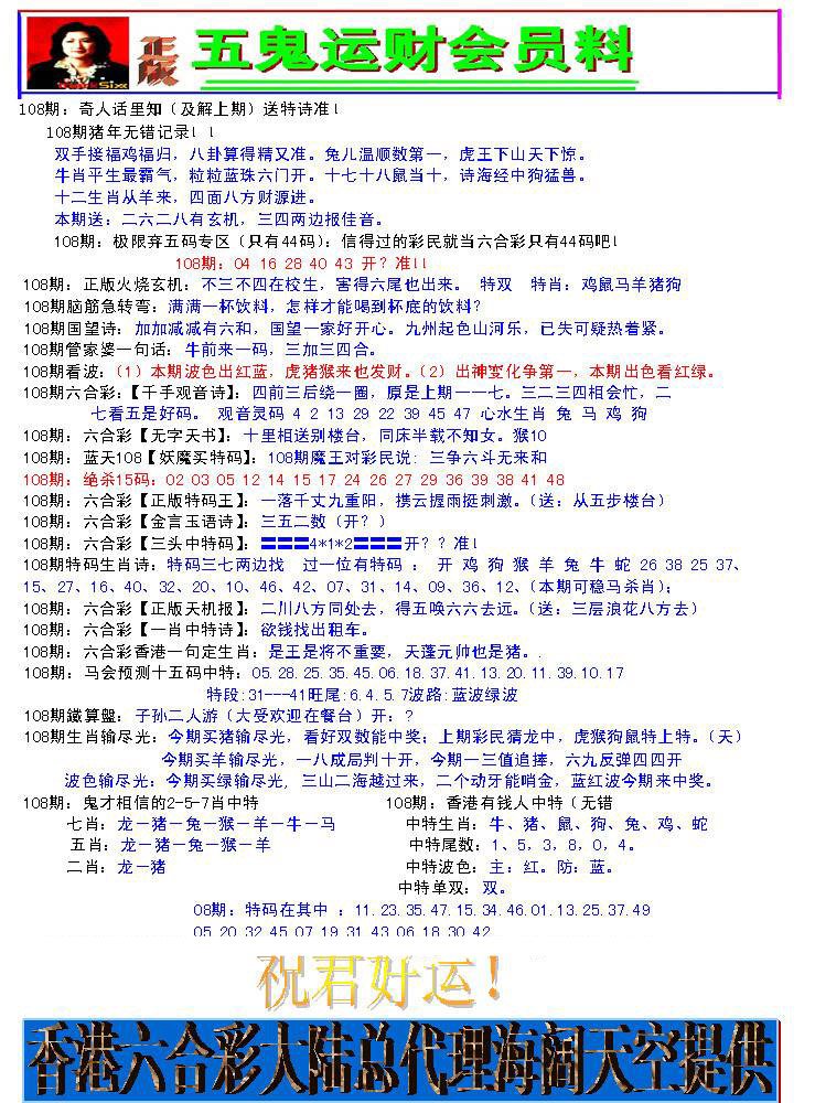 108期五鬼运财会员料[图]