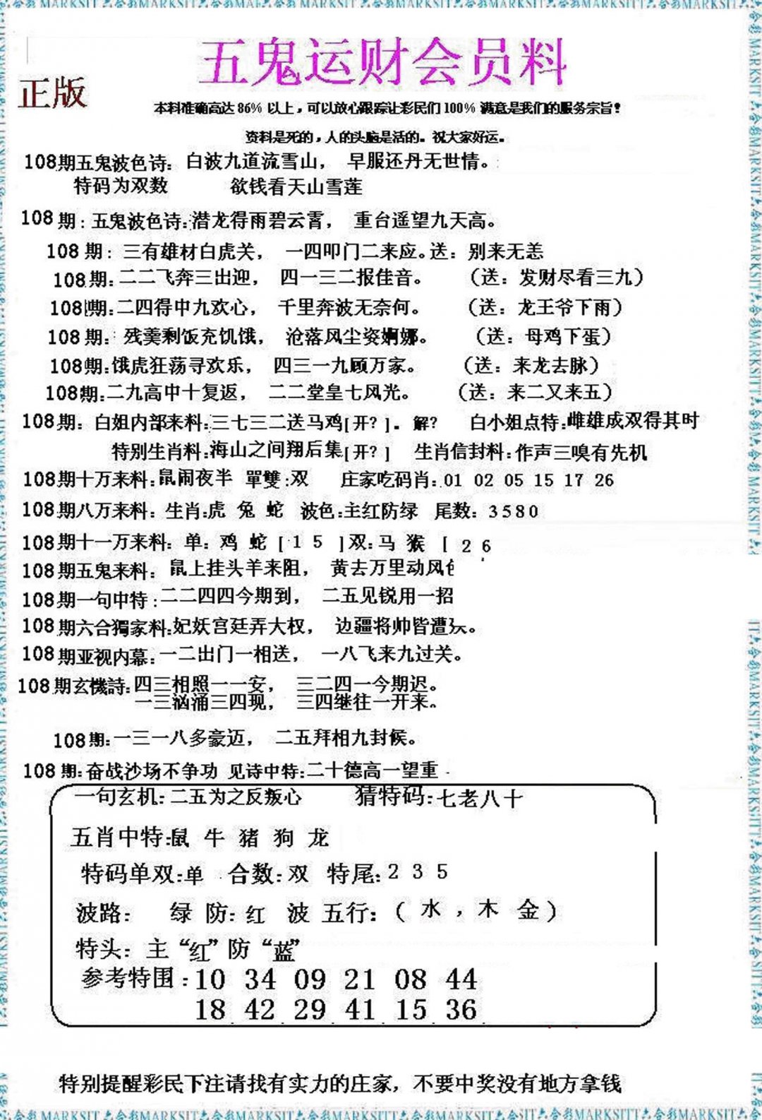 108期五鬼数理报[图]