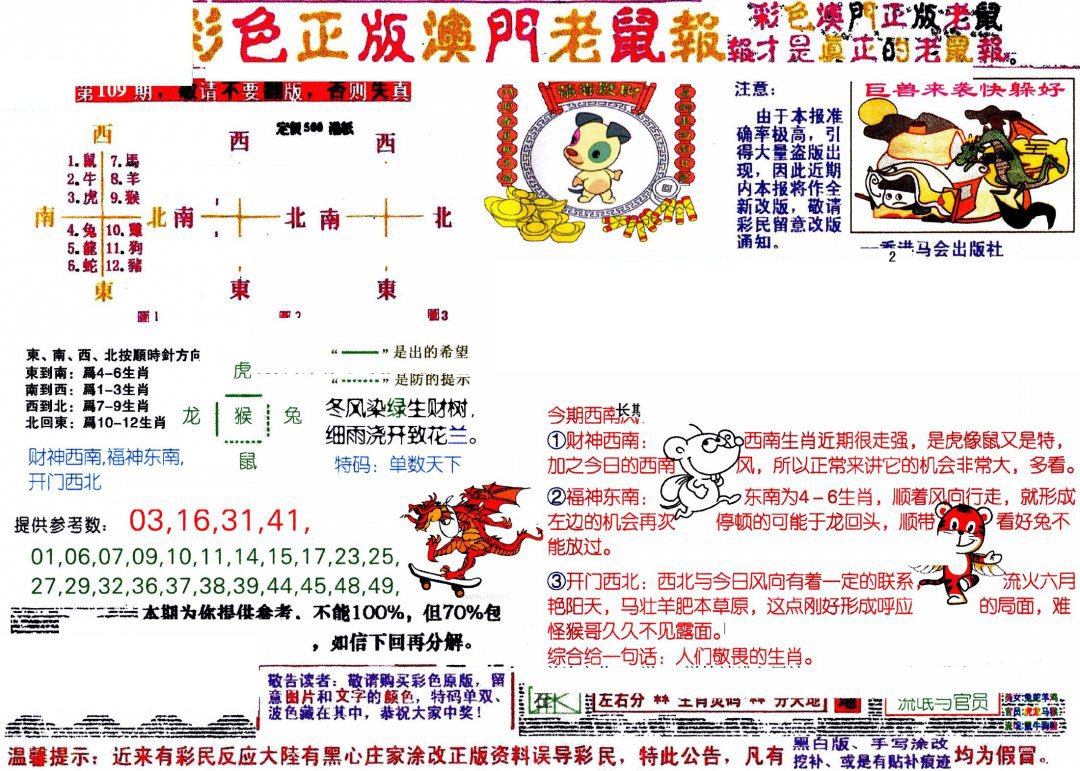 109期彩色正版澳门老鼠报[图]