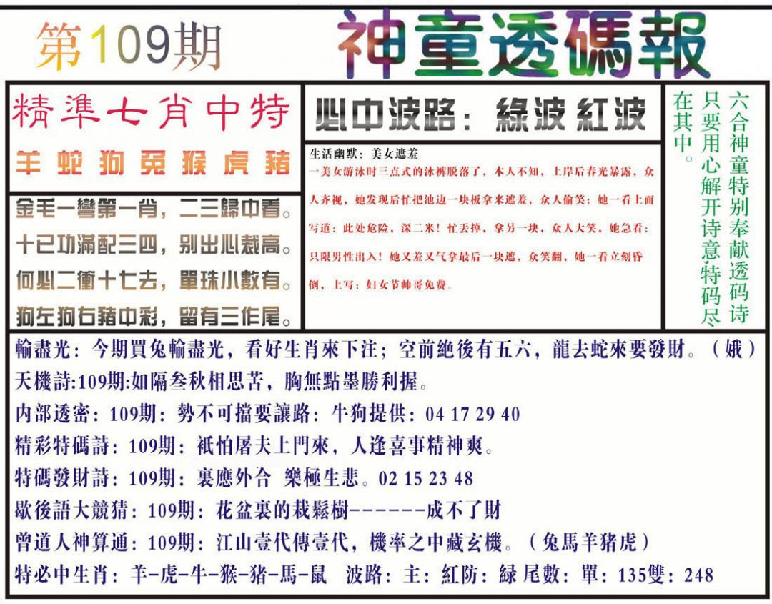 109期神童透码报(正版)[图]