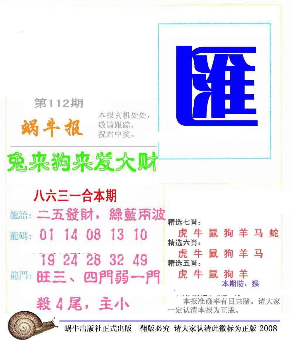 112期蜗牛彩报(正版)[图]