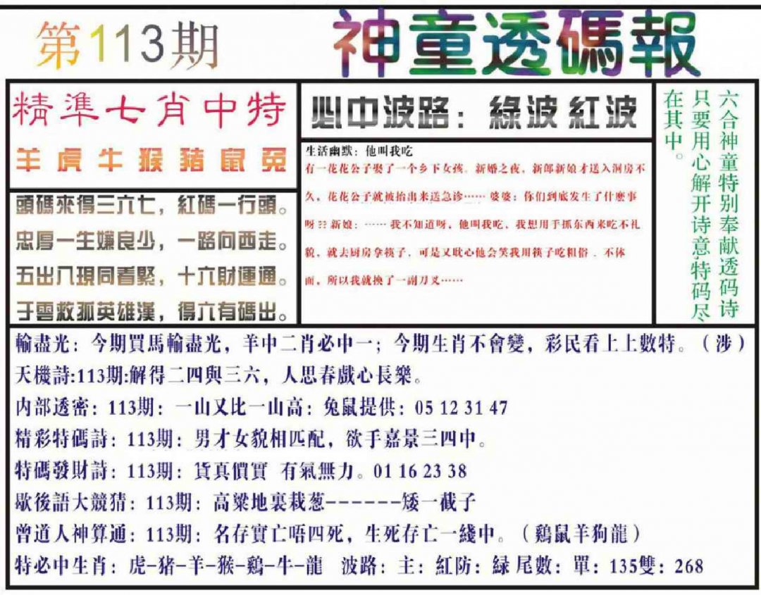 113期神童透码报(正版)[图]