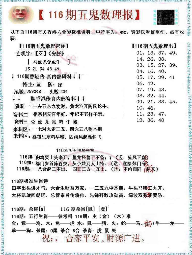 116期五鬼数理报[图]