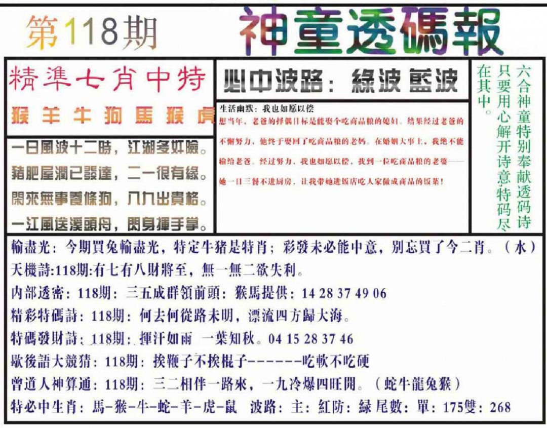 118期神童透码报(正版)[图]