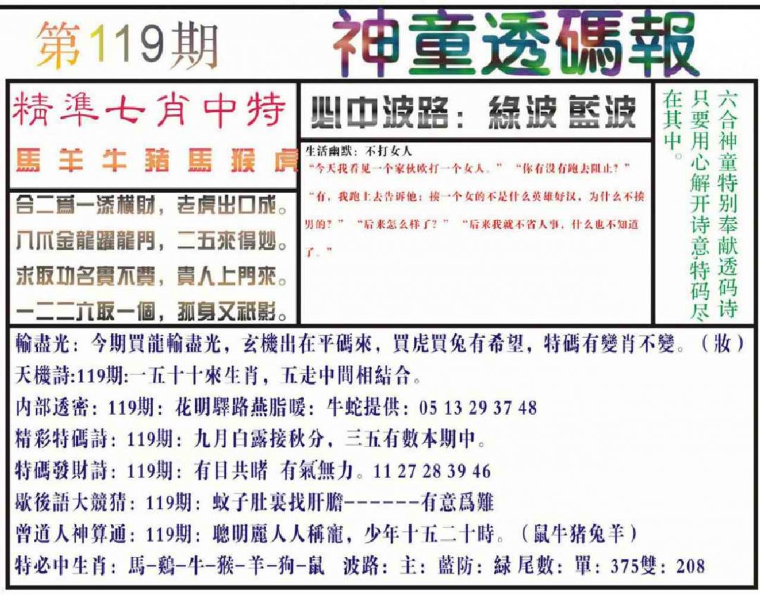 119期神童透码报(正版)[图]
