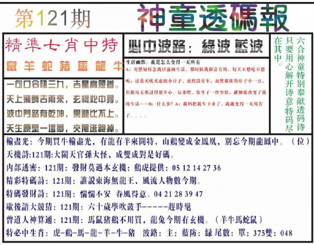 121期神童透码报(正版)[图]