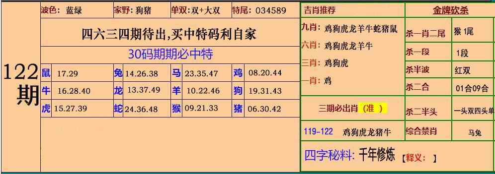 122期小鱼儿30码期期中[图]