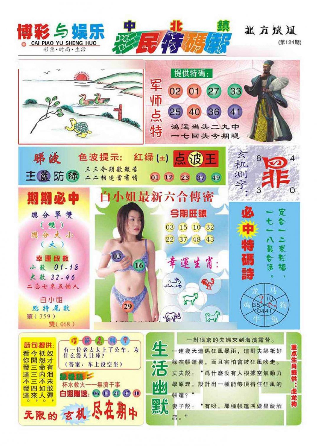 124期中北彩民特码报(新)[图]