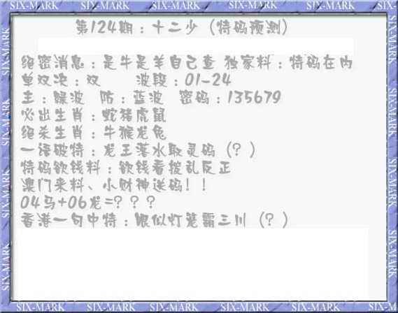 124期十二少(特码预测)[图]