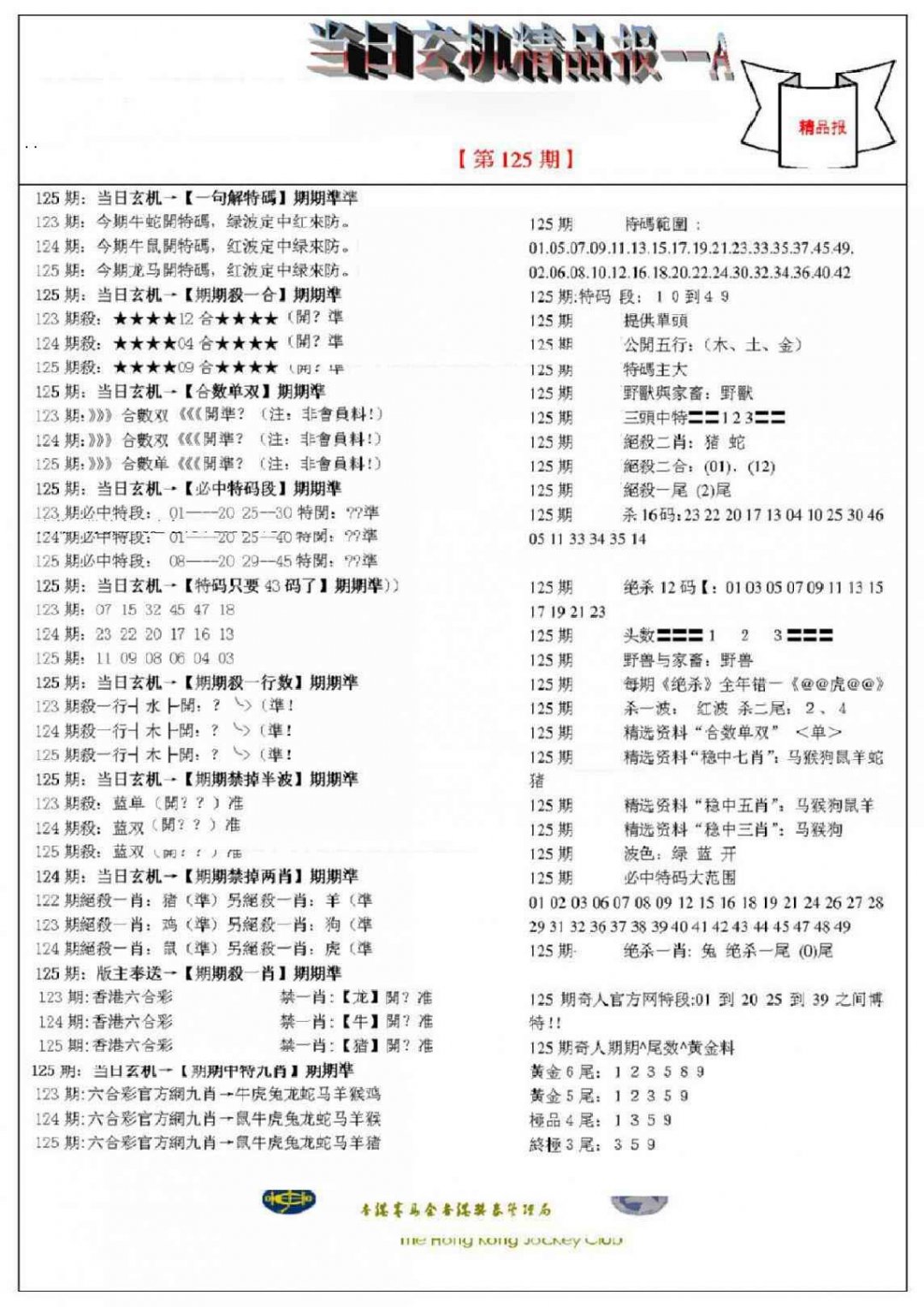 125期当日玄机精品报A[图]