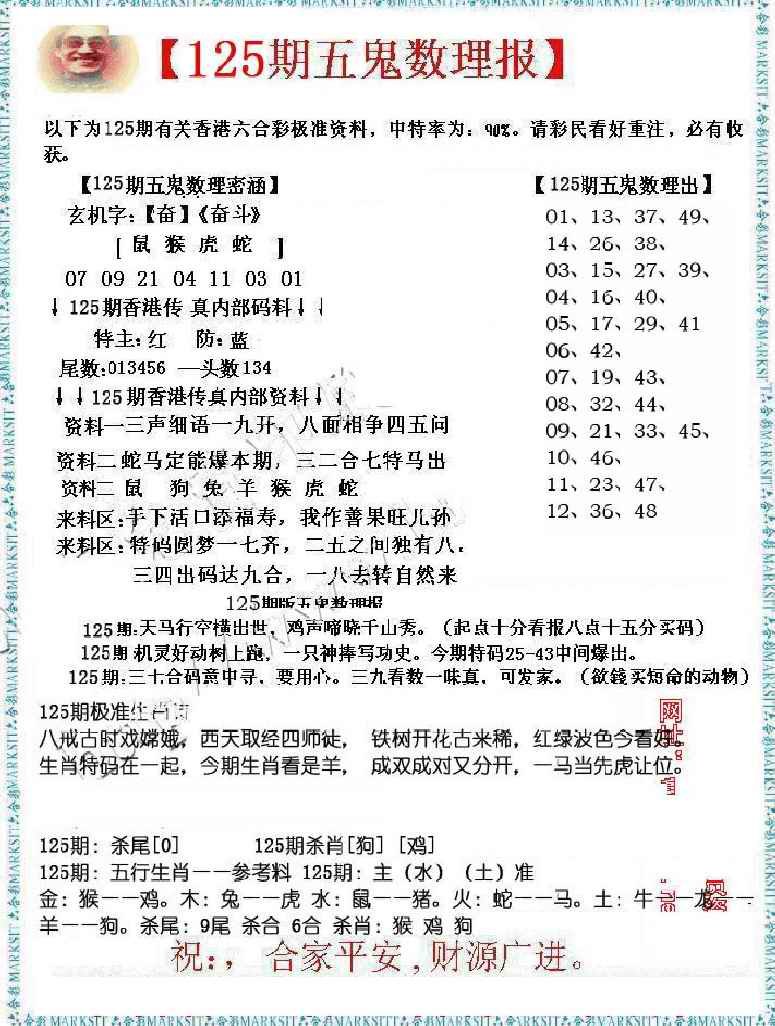 125期五鬼数理报[图]