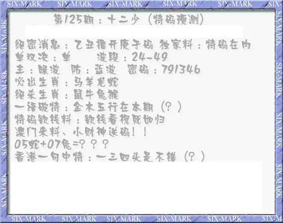 125期十二少(特码预测)[图]