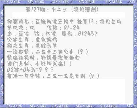 127期十二少(特码预测)[图]