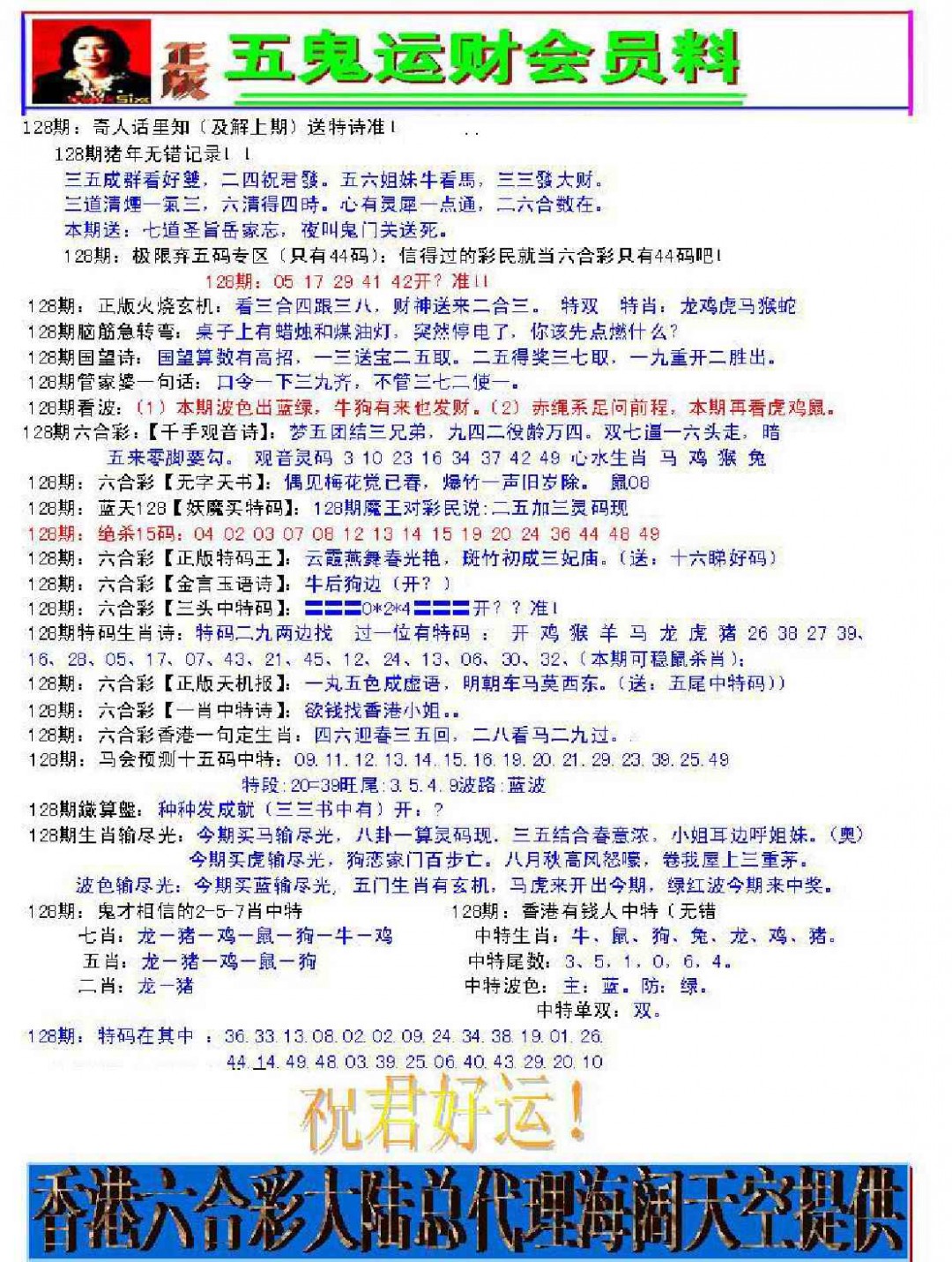128期五鬼运财会员料[图]