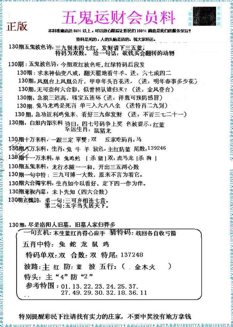 130期五鬼运财会员料[图]