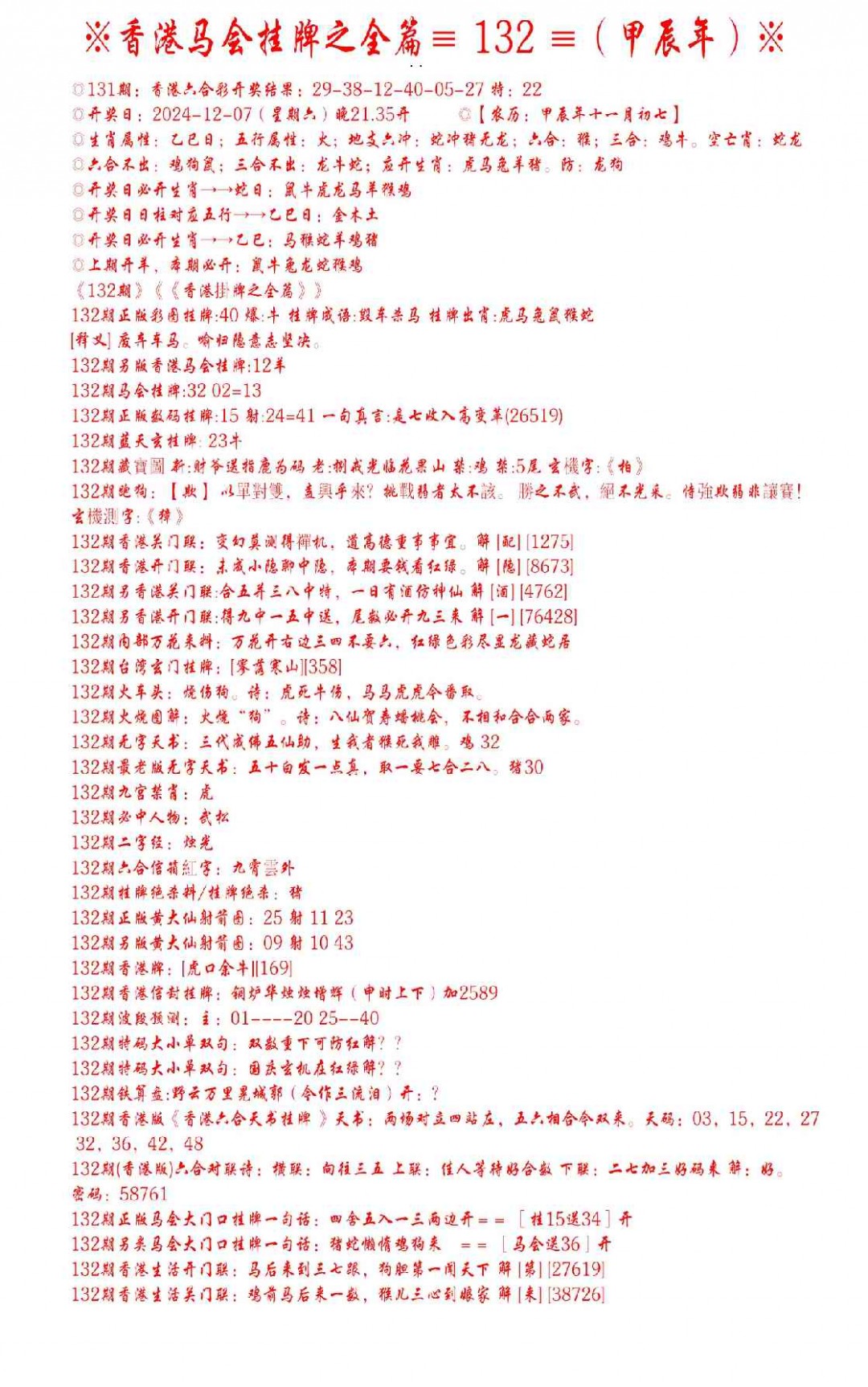 132期手写马会挂牌[图]
