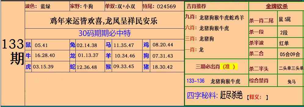133期小鱼儿30码期期中[图]