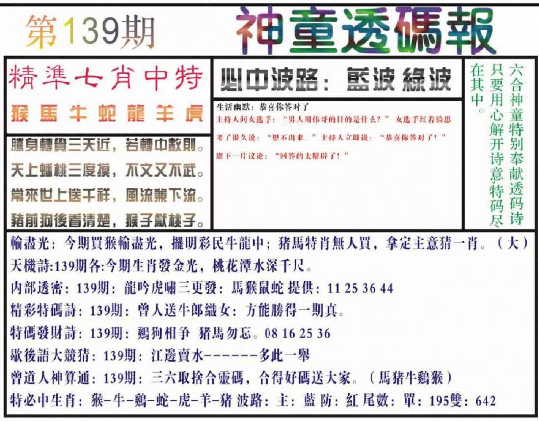 139期神童透码报(正版)[图]