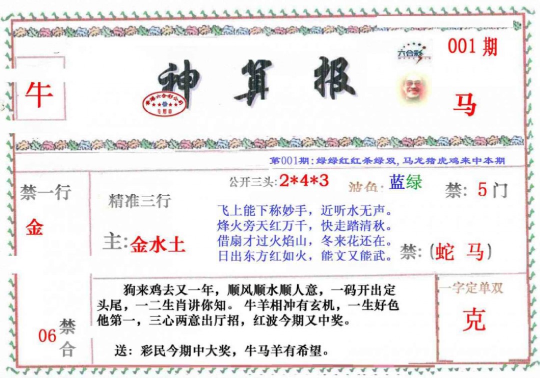 001期神算报[图]