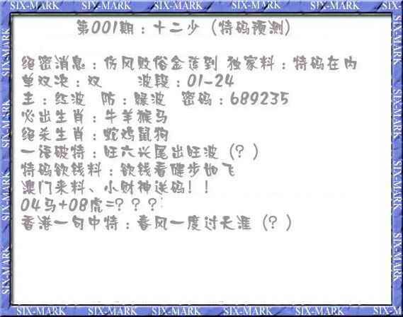 001期十二少(特码预测)[图]