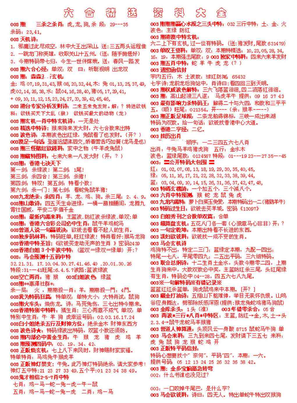 003期六合精选资料大全[图]