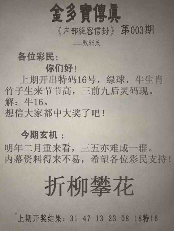 003期金多宝传真[图]