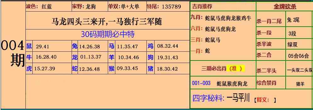004期小鱼儿30码期期中[图]