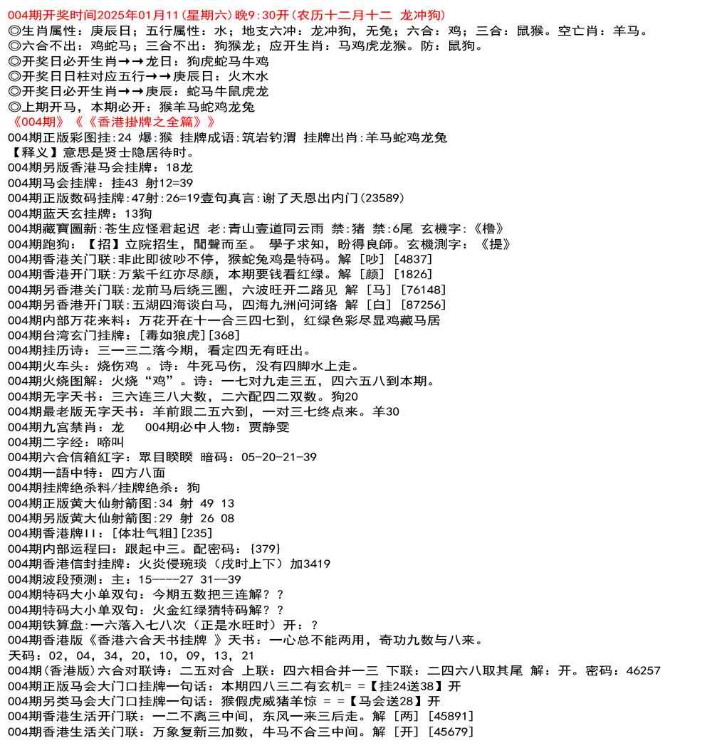004期九龙挂牌全篇[图]