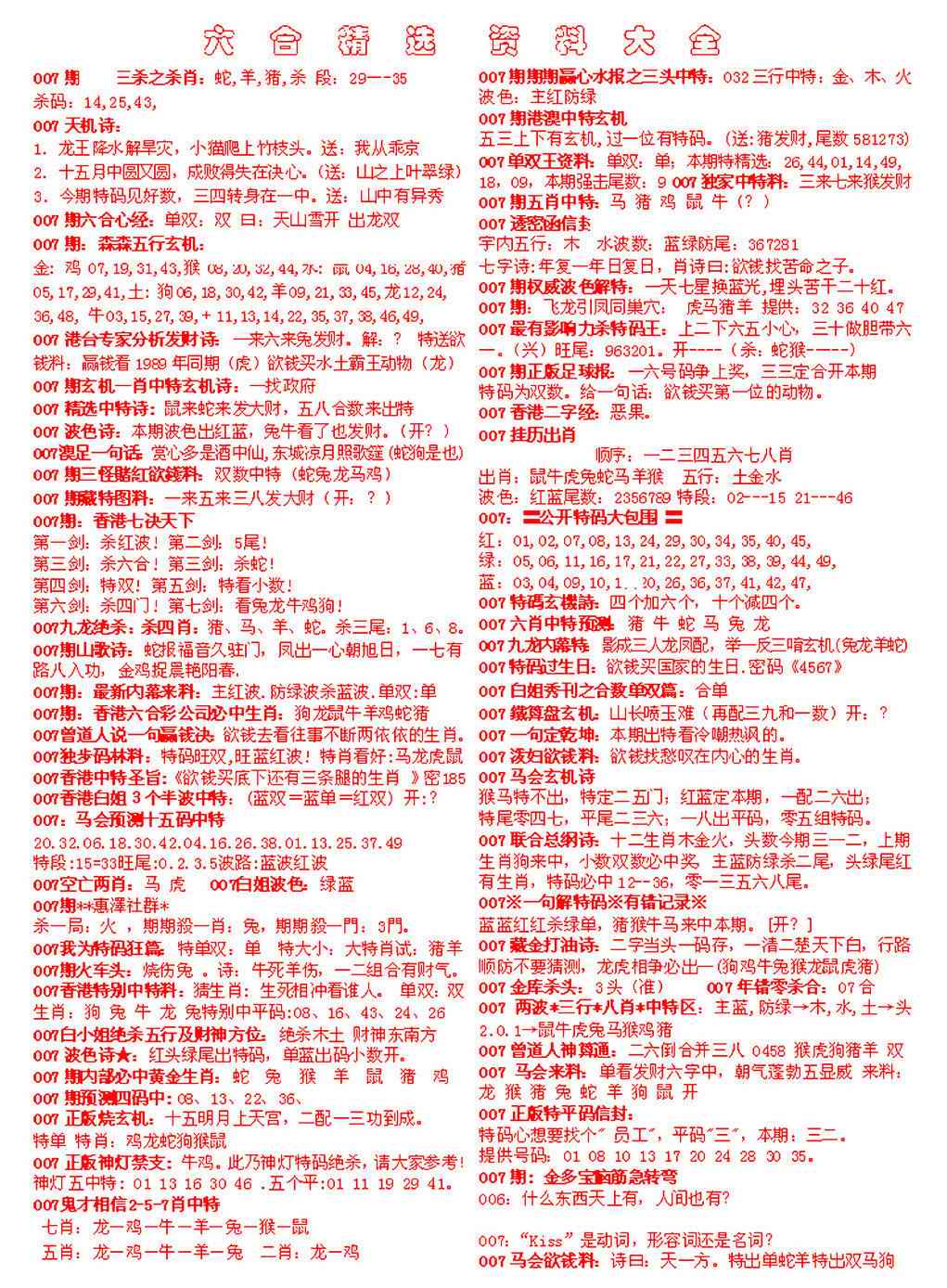 007期六合精选资料大全[图]