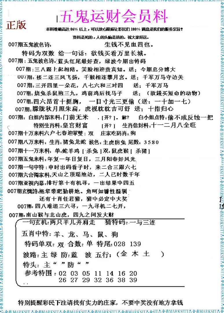 007期五鬼运财会员料[图]