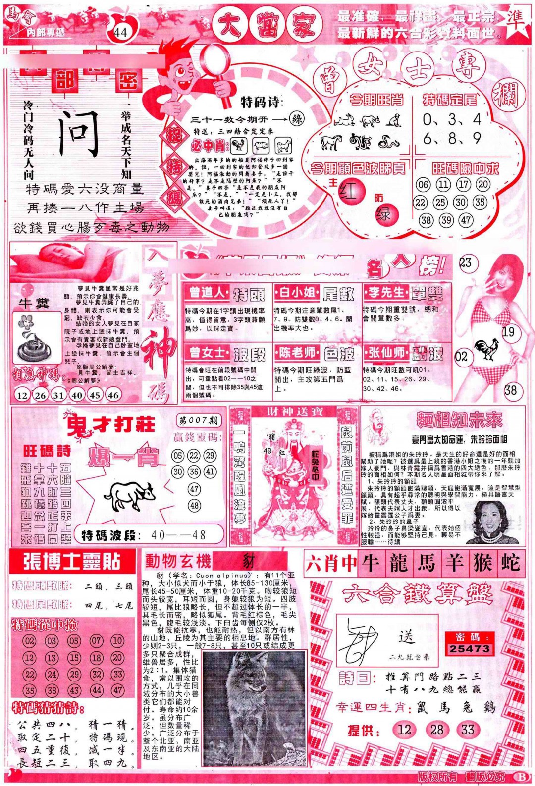 007期彩卷后庄B(保证香港版)[图]