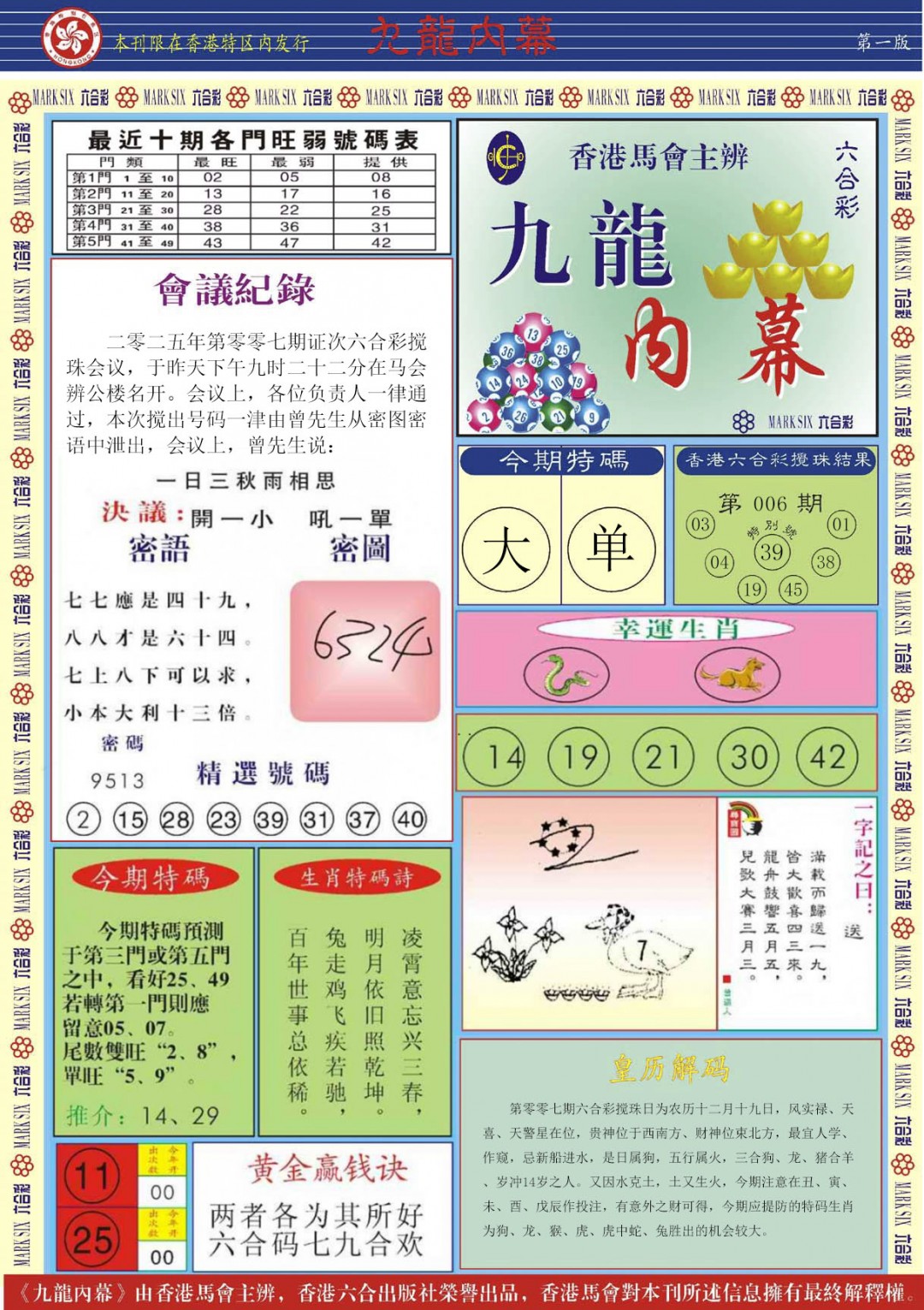 007期九龙内幕A[图]