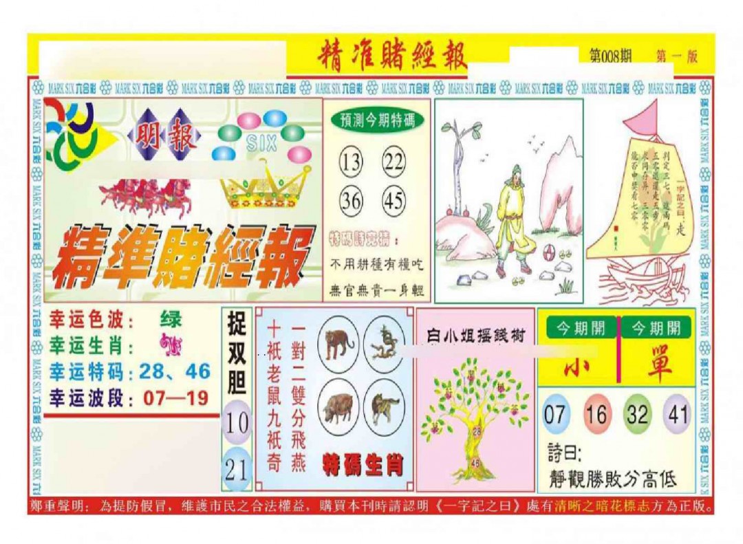 008期精准赌经报A(新图)[图]