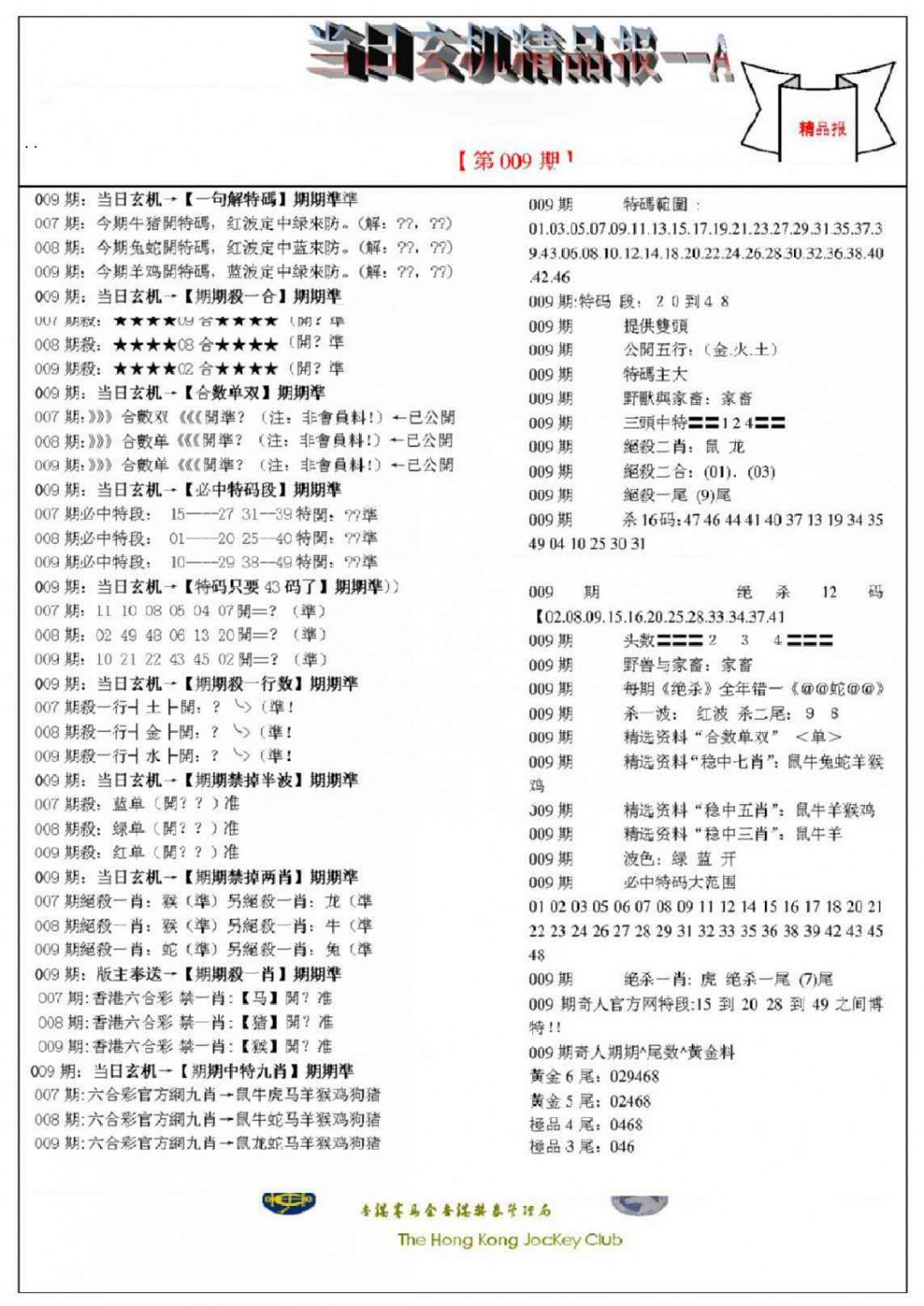 009期当日玄机精品报A[图]